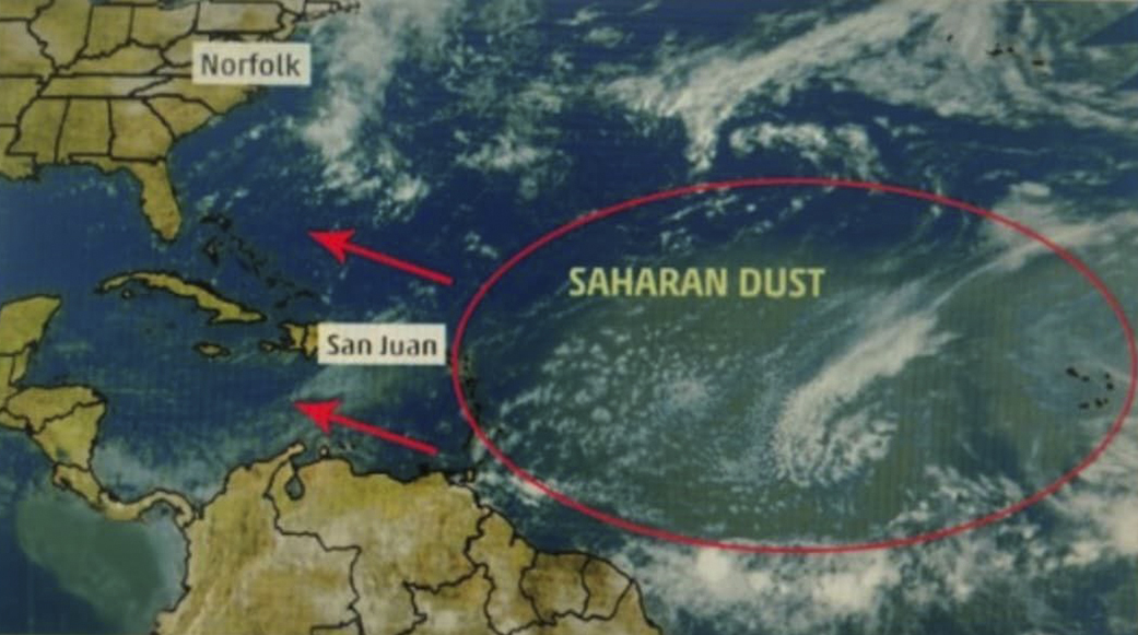 Detalló que estas capas de polvo se originan en el desierto del Sahara y son transportadas por los vientos alisios del noreste, los cuales, durante esta época del año, alcanzan mayor intensidad y arrastran grandes concentraciones de partículas a través del Atlántico Tropical.