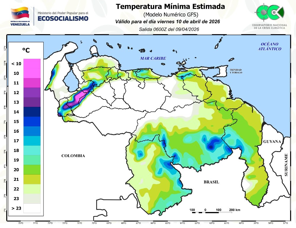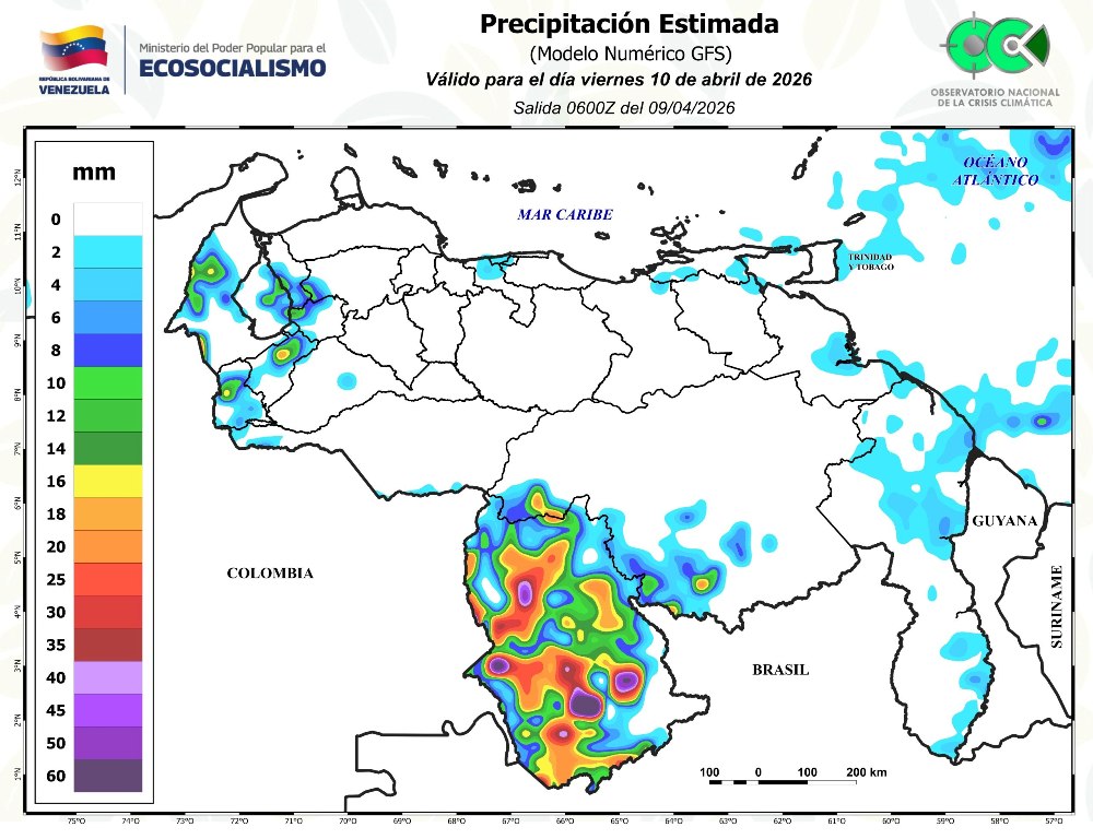 El coronel José Pereira, viceministro para la Preservación de la Vida y la Biodiversidad del Ministerio del Poder Popular para el Ecosocialismo (Minec), informó que también se registran chubascos dispersos en sectores de Amazonas y el sur de Bolívar, producto de la actividad convectiva típica de la región durante las primeras horas del día.