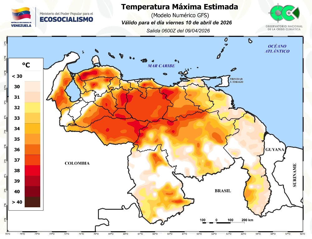 El Observatorio Nacional de la Crisis Climática (ONCC), estima que las temperaturas máximas alcanzarán entre 38°C y 40°C en los Llanos, Zulia y Falcón, mientras que en el resto del país se ubicarán entre 33°C y 35°C durante la tarde. Sobre este comportamiento térmico, Pereira destacó que “la declinación solar sobre regiones llaneras, norte de Bolívar, parte de Apure y Táchira, genera radiación directa”, lo que intensifica la sensación de calor.